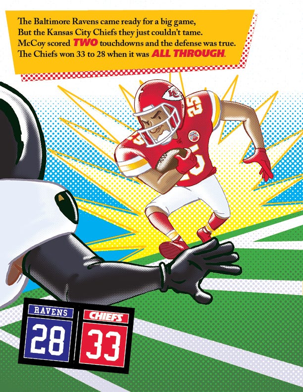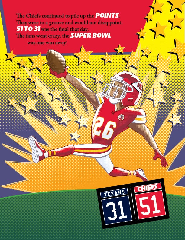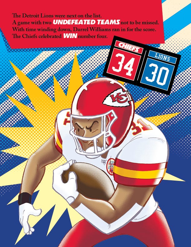 When the Chiefs won the Super Bowl in 2020, I was hired to illustrate a picture book about it. It was the highest profile project I’d ever had. The book had an incredibly fast turn around— the files were sent to the printer mid-April— which meant that I had less than 2 months to illustrate the book.